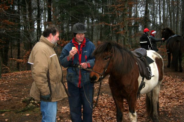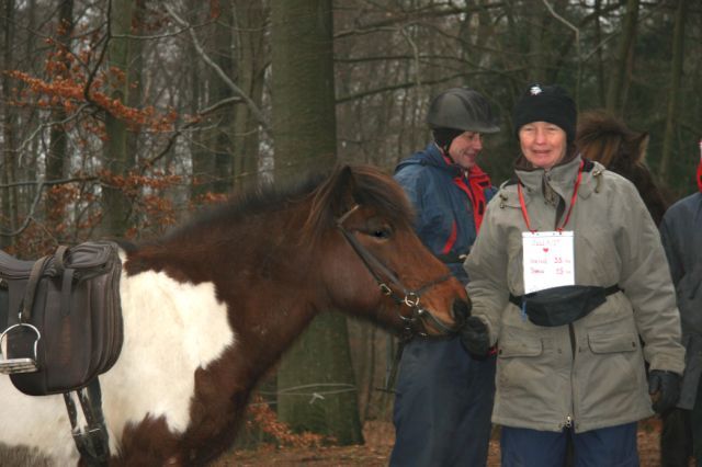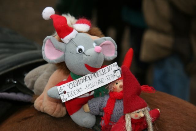 Godt 20 ryttere og heste og omtrent lige så mange deltagere uden hest mødtes ved grillpladsen, hvor der var gløgg, te og æbleskiver. Mange både heste og ryttere var i de herligste juleudklædninger og det var vanskeligt at vælge hvem der skulle have præmierne. Første præmien gik til Mette og "Odinekspressen" og anden pladsen gik til Leif og Ofeigur.