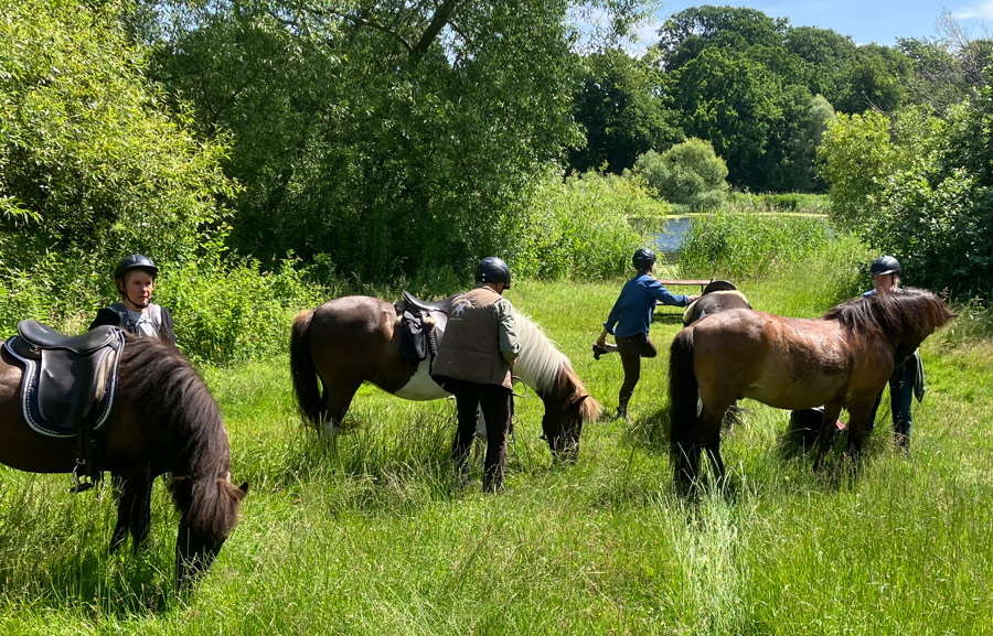 Vi havde en god tur med 7 heste og fik besøg af Charlotte og Henrik ved Høkeren hvor der var dejligt højt græs til hestene.
